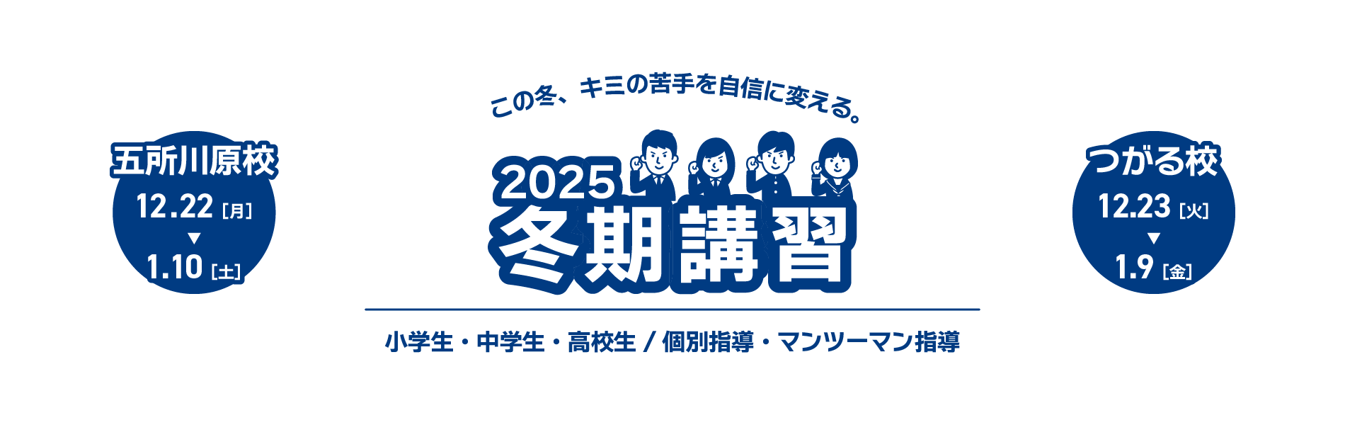 - 冬期講習受付中!青森県は豪雪地ながら冬休みは短いです。この短い期間で、受験への最後の詰めや2学期内容の復習などを行わなくてはなりません。冬休みをどのように過ごすかによって、まわりとの差が大きく開きます。この冬休みが一人ひとりにとってのベ […]